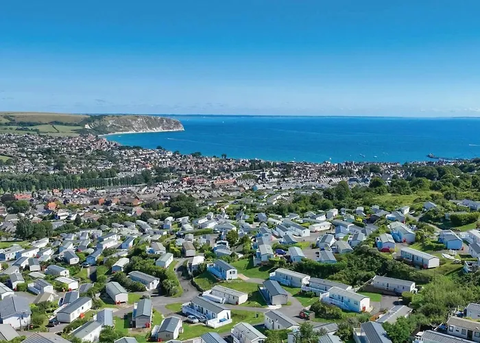 Il Swanage Caravan - Beautiful Sea View With Large Decking Area, Free Ee Wifi On Swanage Bay View Holiday Park si trova a Swanage, a 18 minuti a piedi dal Museo e Centro del Patrimonio di Swanage, e offre una piscina interna.